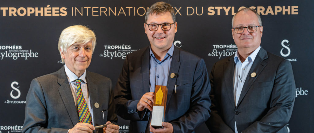 Full of pride for the Otto Hutt brand, we are enormously pleased to receive international recognition from writing instrument lovers. Already in 2021, Otto Hutt was pleased to receive the trophy for the everyday companion, Trophée de l’écriture au quotidien, for the design01. This year’s award in the category Nib of the Year was handed over by Yves Maquinay, representative of the luxury retailer Signature Liège.